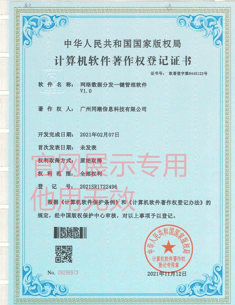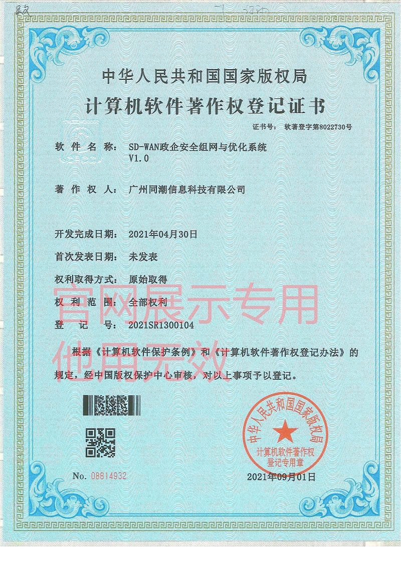 广州同潮信息科技有限公司,国家级高新技术企业,2018年成立于广州市,是同潮信息产业(广州)有限公司控股子公司,是一家以网络组网、优化和集成技术见长的企业,致力于以企业网络需求为基础提供定制化解决方案。是通过广东省科技厅认证的科技型中小企业。目前,公司已拥有工信部颁发的增值电信业务经营许可证,国家版权中心颁发的10个软件著作权。